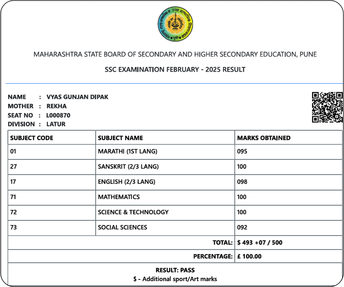 Ek student ne Maharashtra Rank 1 (100%) bhi secure kiya.