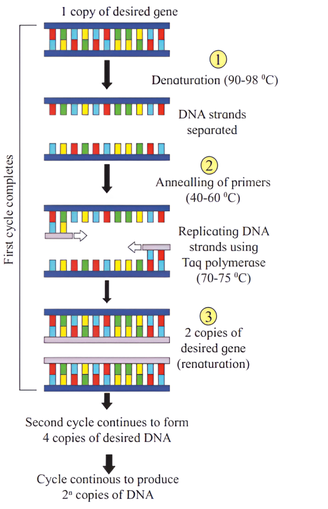 5. Give the steps in PCR or polymerase chain reaction with suitable diagrams.