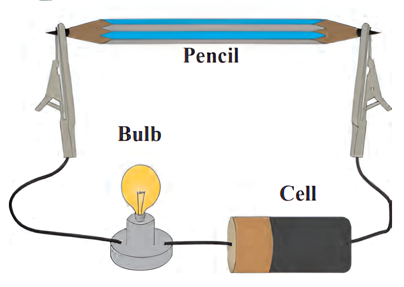 - This experiment proves that graphite is a good conductor of electricity as graphite has free electrons moving continuously within the entire layer and these free electrons conduct electricity in the lead of the pencil.