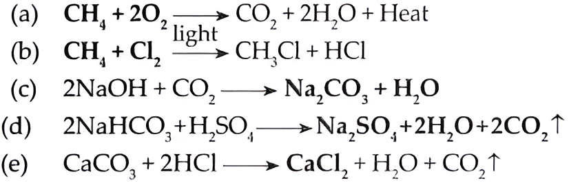 (iv) Thus when hydrocarbons are burnt in air, large amount of heat is evolved with formation of carbon dioxide (CO2) and water (H2O). Due to evolution of heat on combustion, carbon and its compounds are used as fuels.