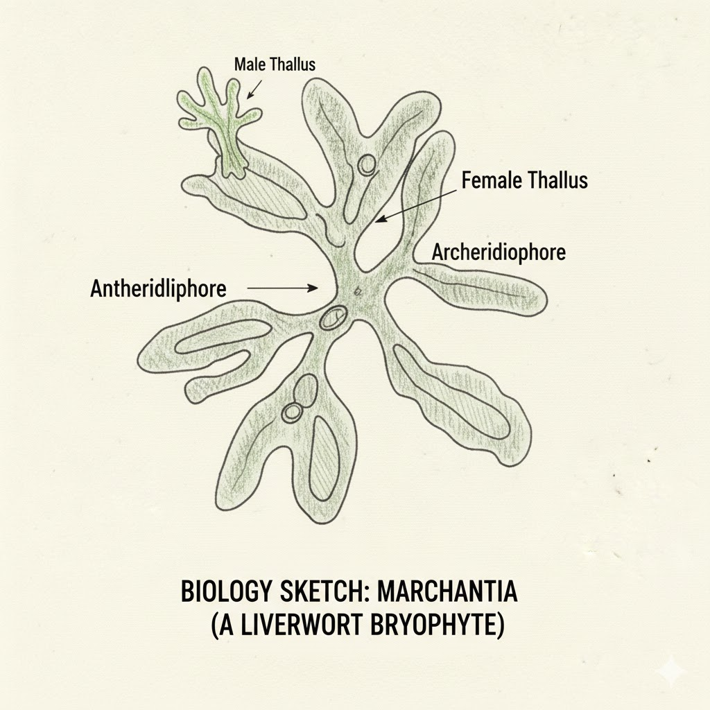 (5) Examples : Riccia, Marchantia, Anthoceros, Funaria, etc.