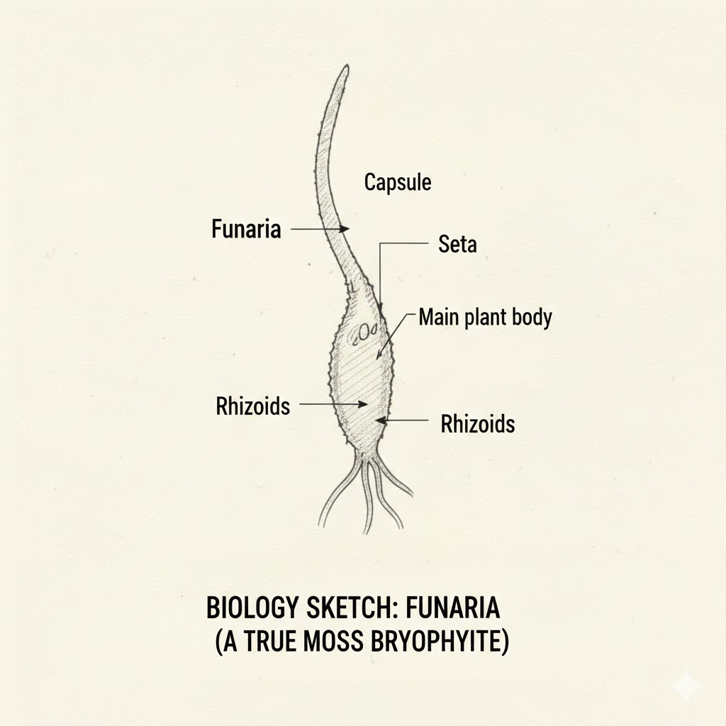 - The plant body of Funaria is differentiated into stem-like parts, leaf-like parts and root-like rhizoids.