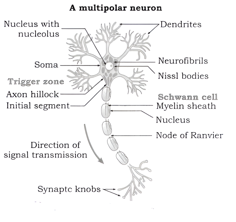 (3) Association, adjustor or intermediate neuron : It is present in the grey matter of spinal cord. Receiving impulse from sensory neuron, interpreting it and generating motor impulse are done by association neuron.