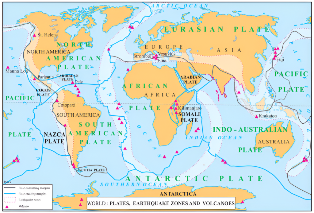 - The plate boundaries are directly related to the areas of volcanoes.