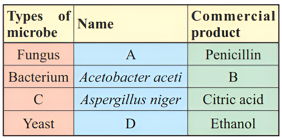 8. What are A, B, C and D in the table given below :