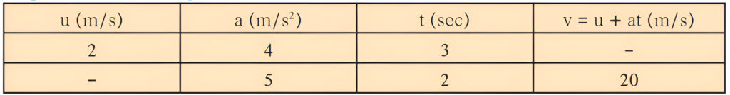 | Zero acceleration | The velocity of the object remains constant | A vehicle is moving with a velocity of 25 m/s |