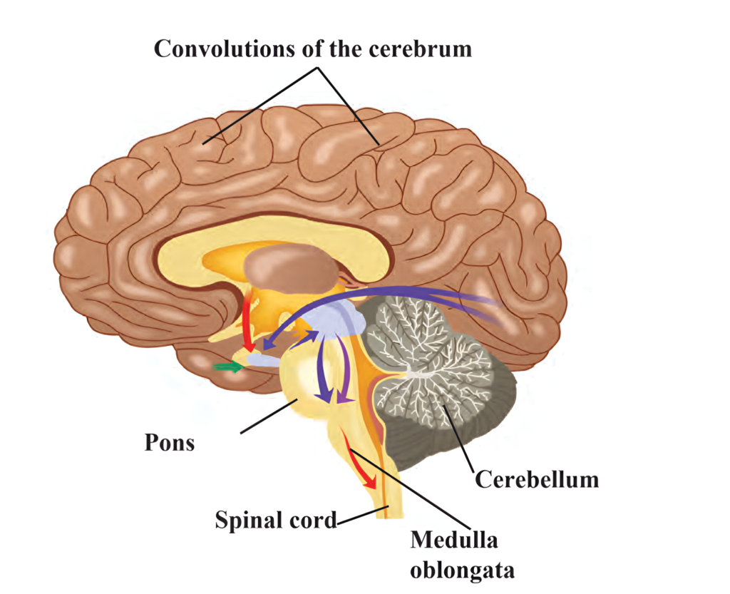 (3) There are three main parts of the brain, viz. Cerebrum, cerebellum and medulla oblongata.