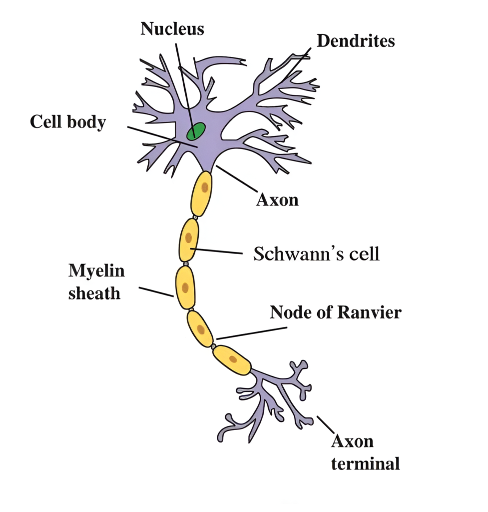(4) These signals are transferred to cyton and from cyton they are sent to axons. From axon of one neuron, the impulse is then given to dendrites of next neuron.
