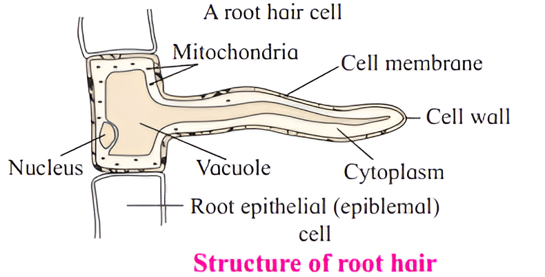 - Unicellular root hairs which are tubular extensions of epiblema cells absorb readily available capillary water from soil.