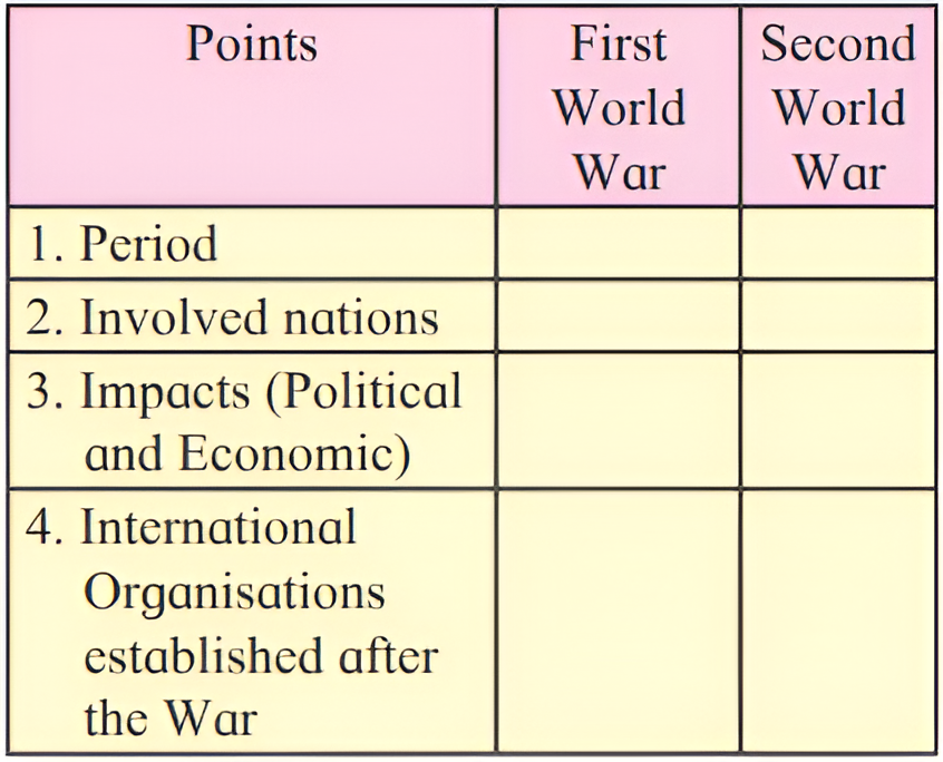(1) Compare the First World War and the Second World War with the help of the following points :