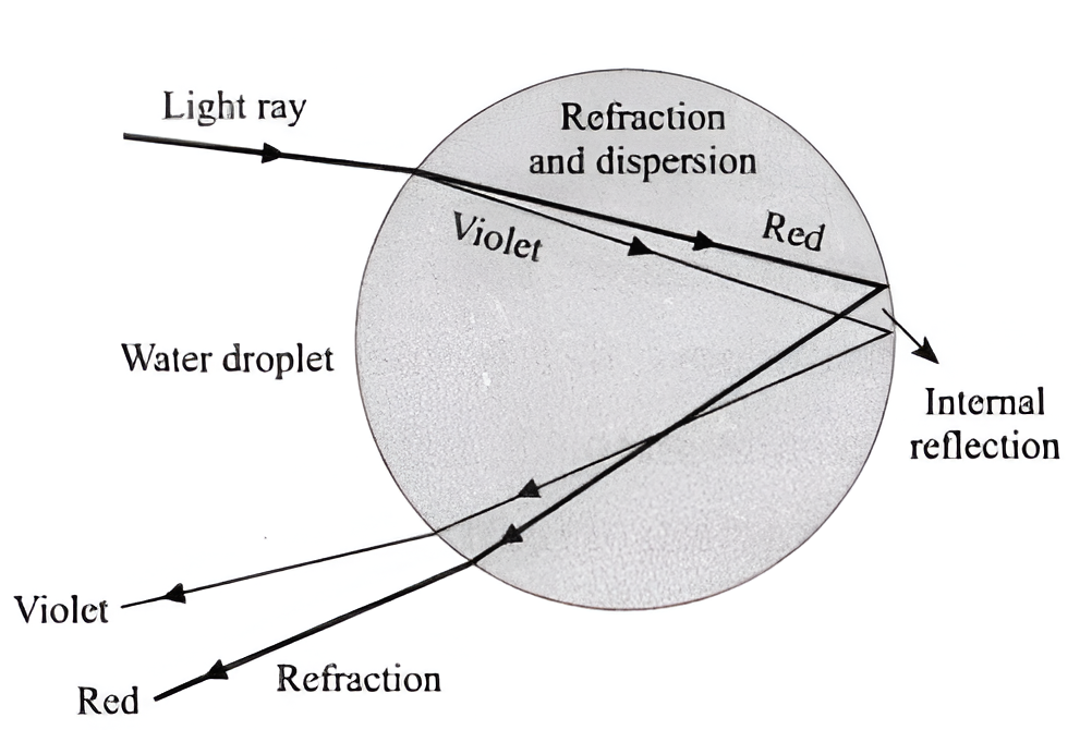 (ii) internal reflection of light inside the droplet and
