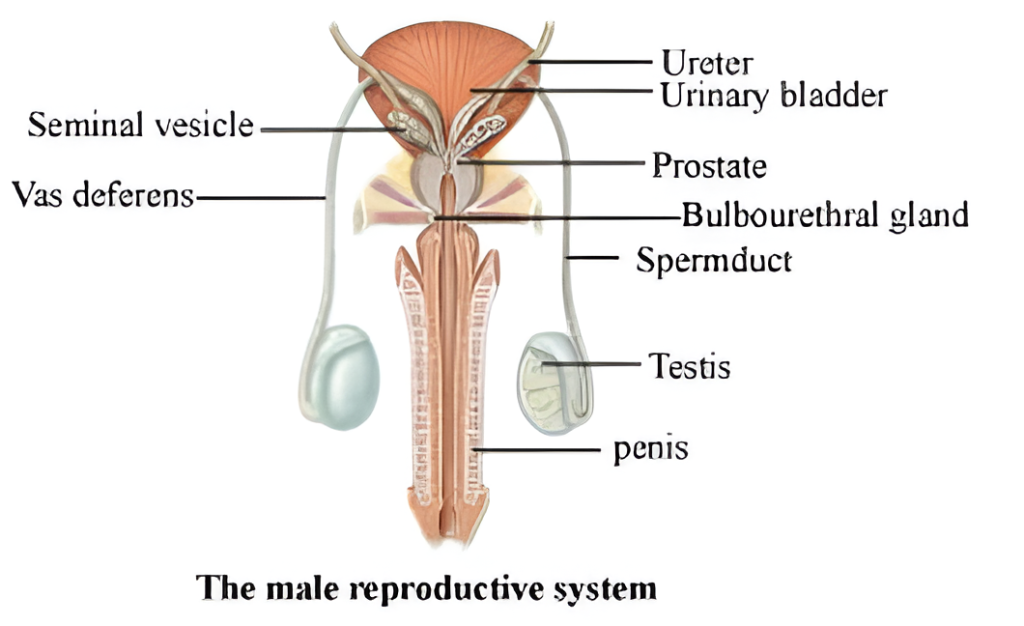 1. Explain the following parts of male reproductive system along with labelled diagram showing these partsTestis, vasa deferentia, epididymis, seminal vesicle, proastate gland and penis.
