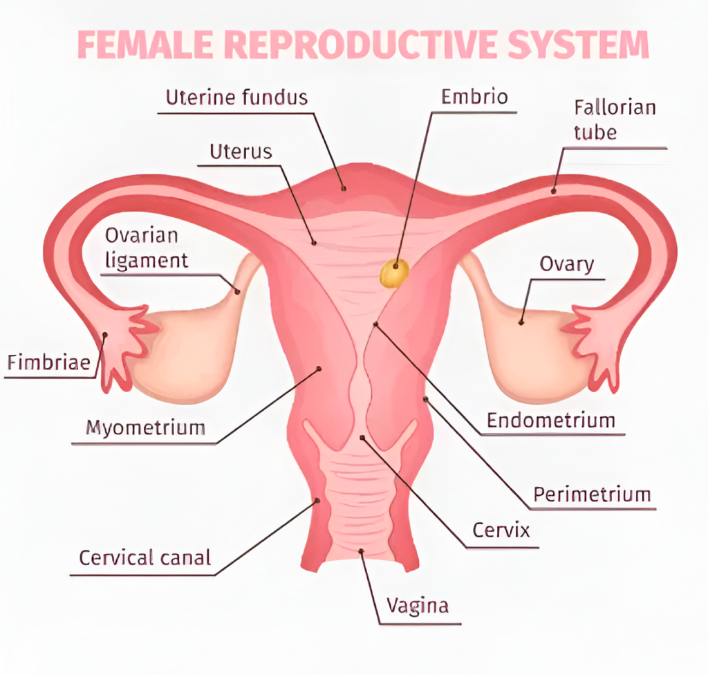 (ii) Uterus has the following three parts : Fundus, Body or corpus and Cervix.