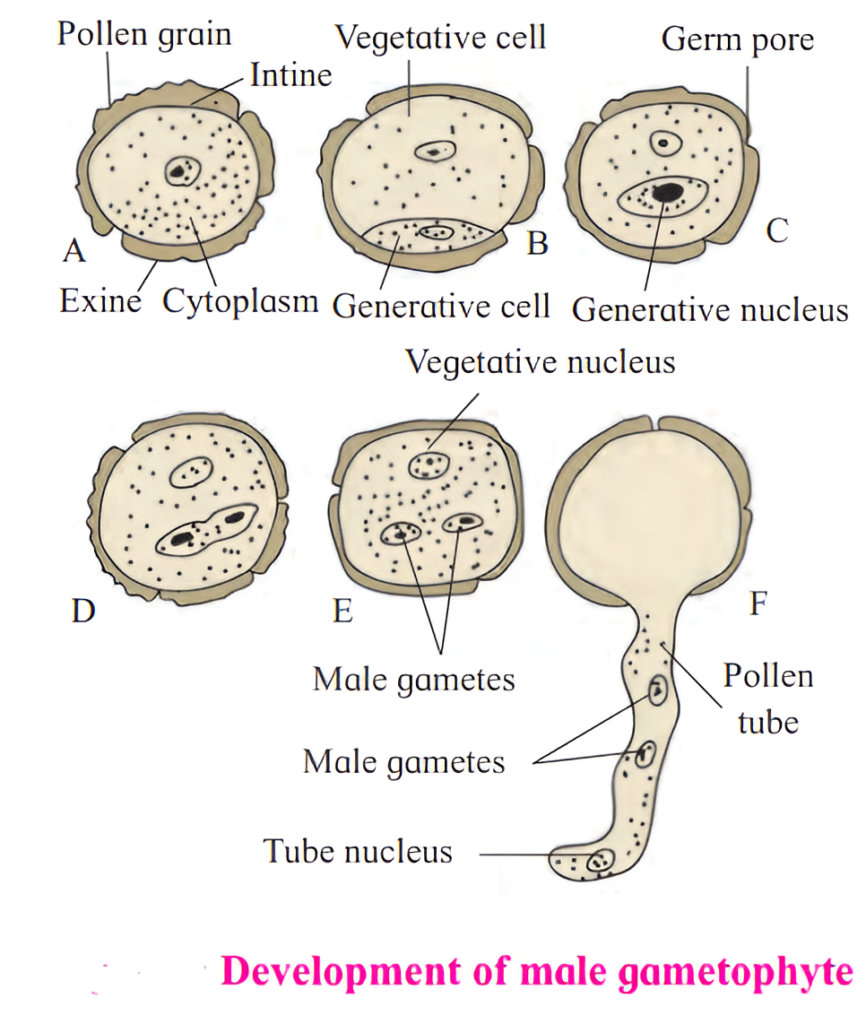 2. Explain the stages involved in the maturation of microspore into male gametophyte.