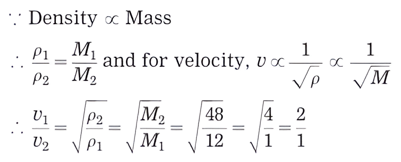 d. Hydrogen gas is filled in two identical bottles, A and B, at the same temperature. The mass of hydrogen in the two bottles is 12 gm and 48 gm respectively. In which bottle will sound travel faster? How may times as fast as the other? (Ans: In A; Twice)