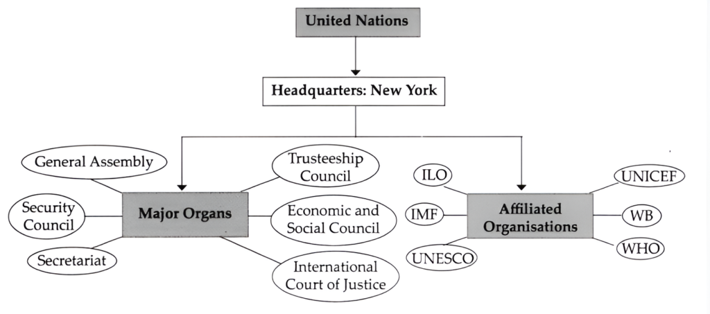 (vii) Hence, the United Nations, an international organisation was established to ensure peace and security at the international level.