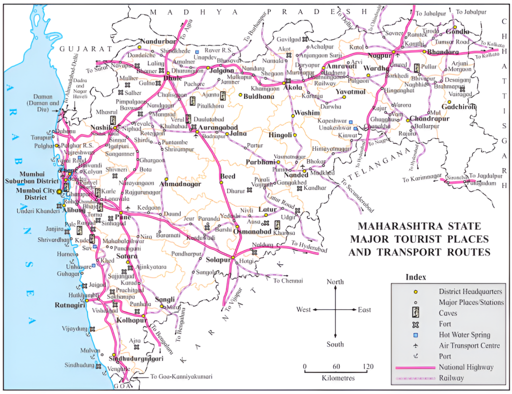 6. The tourism map of Maharashtra is given. Answer the following questions based on the map.