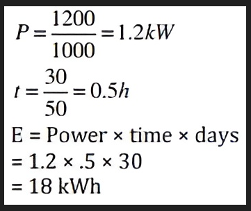 b. If a 1200 W electric iron is used daily for 30 minutes, how much total electricity is consumed in the month of April? (Ans :18 Unit)