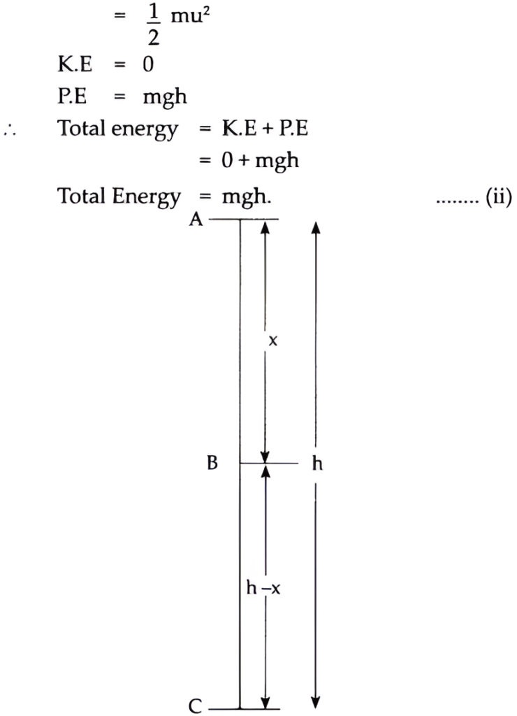 | (ii) K.E = 1/2 mv2 | (ii) P.E = mgh |