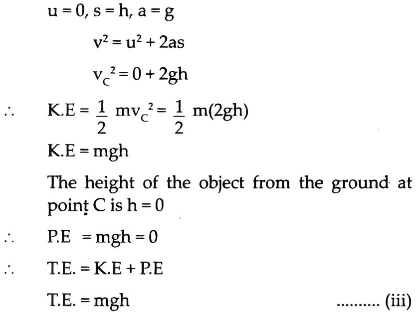 From equations (i) and (iii) we see that the total potential energy of the object at its initial position is the same as the kinetic energy at the ground.