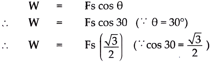 When an object is displaced by displacement ‘s’ and by applying force ‘F’ at an ’angle’ 30°.