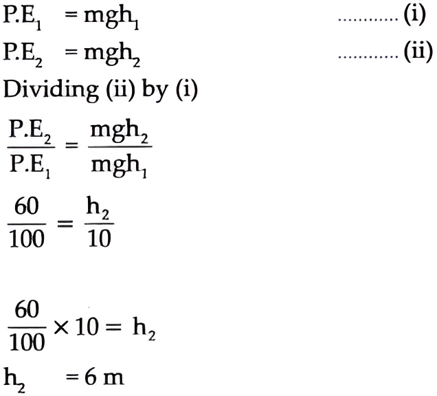 c. If the energy of a ball falling from a height of 10 metres is reduced by 40%, how high will it rebound? (Ans : 6 m)